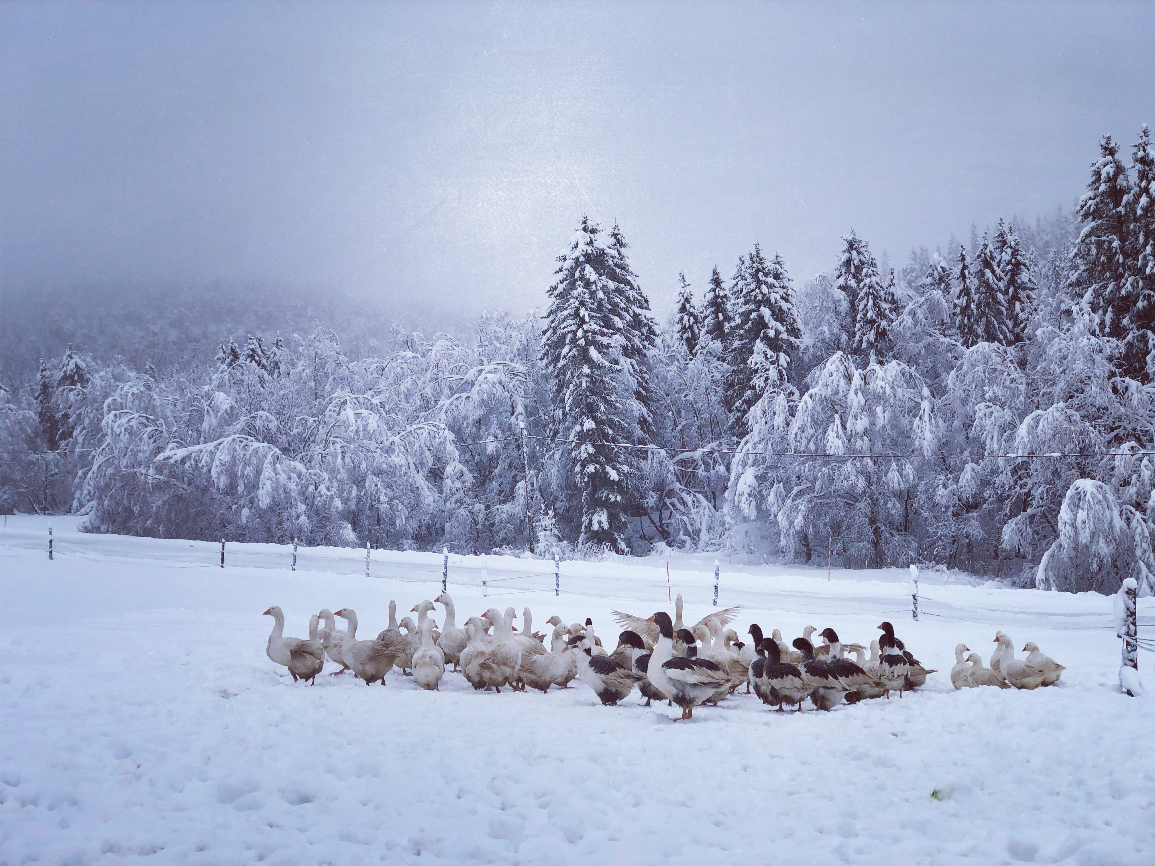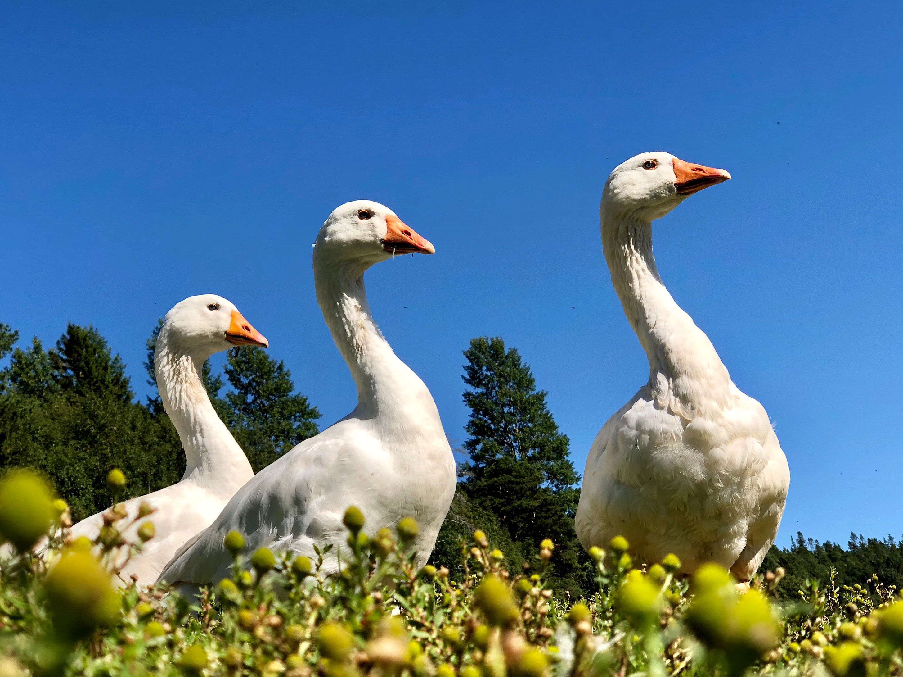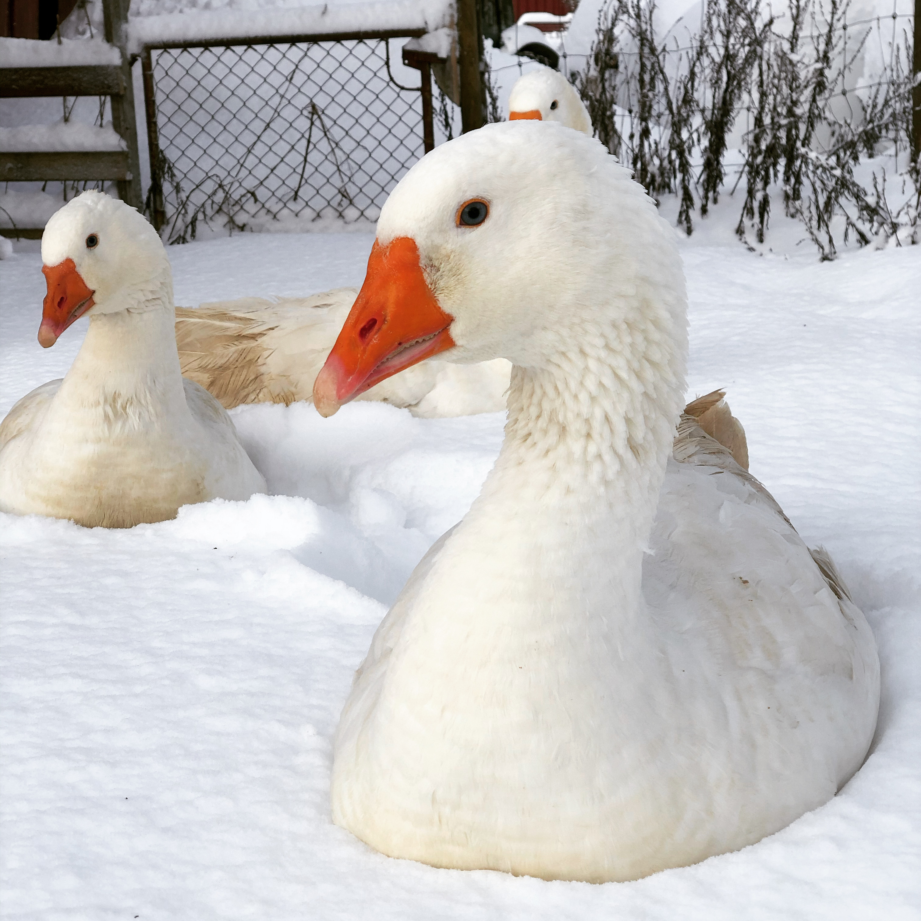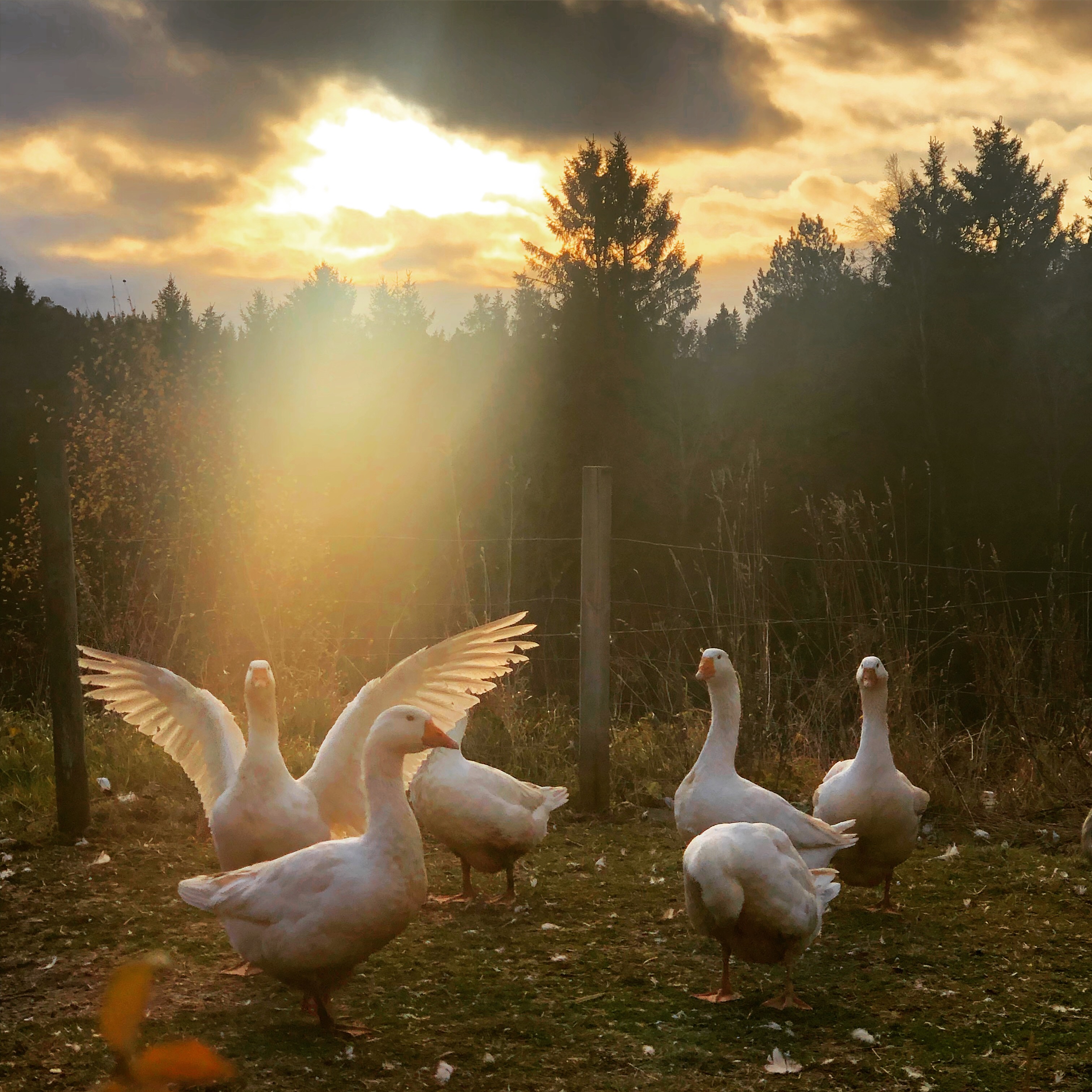 Vi har siden 2019 hatt bevaringsbesetningen av norsk hvit gås i Norge. Denne gåsa var populær rundt andre verdenskrig, men er nå kritisk truet. Norsk hvit gås er ei stor og flott gås på 8-9 kg med de vakreste blå øynene du kan tenke deg. Hardfør og grei, med stor personlighet. Det er også et titalls av den andre norske gåserasen, smålensgåsa, på gården.