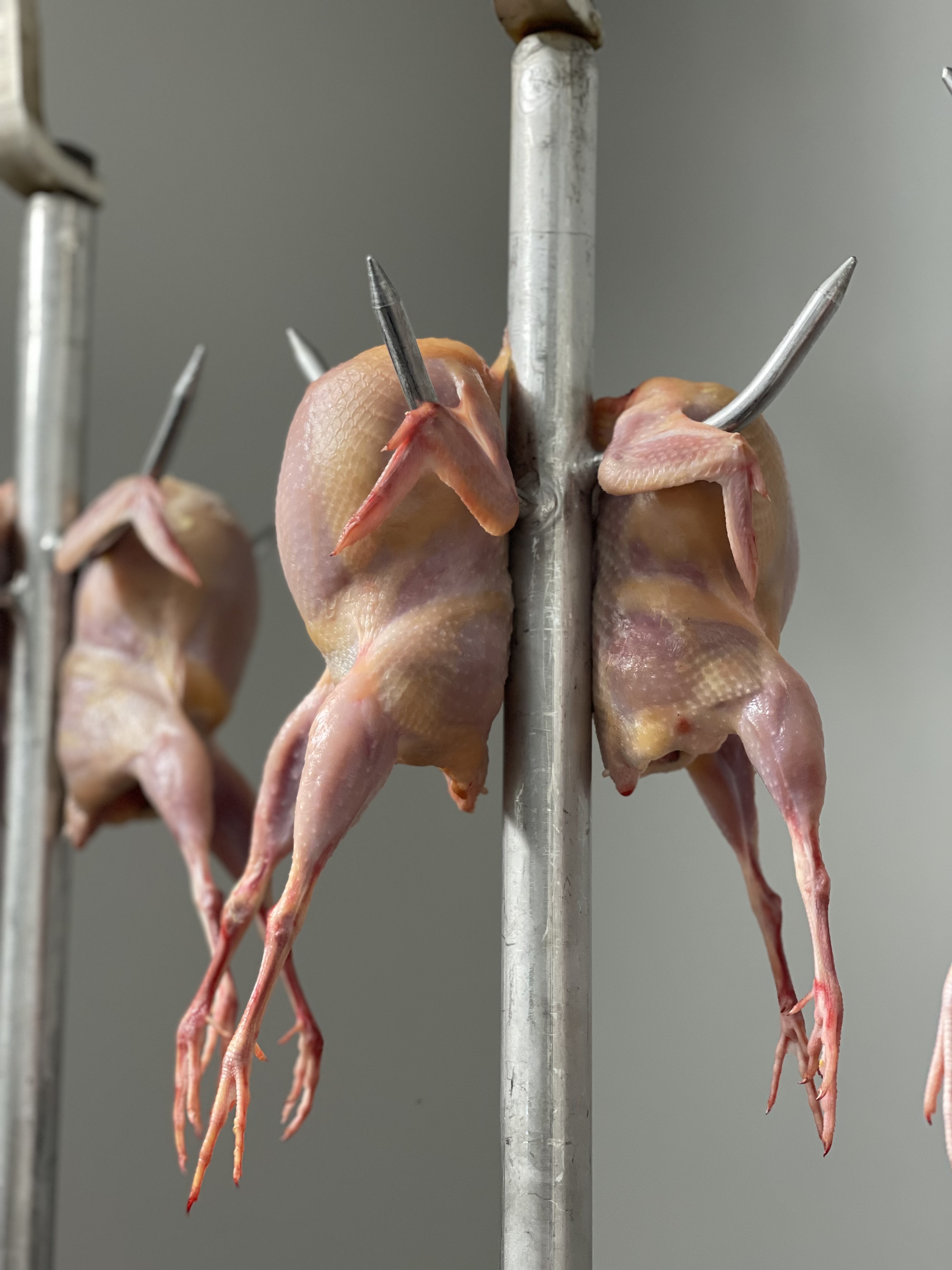 Vi ønsker å ha hele verdikjeden på egen gård og vi ønsker ikke transport av fuglene til slakt. Vi bygget derfor eget gårdsslakteri for gås og vaktel i 2021. Hjemmeslakting gir mindre stress og fuglene blir håndtert av folk de kjenner hele veien.